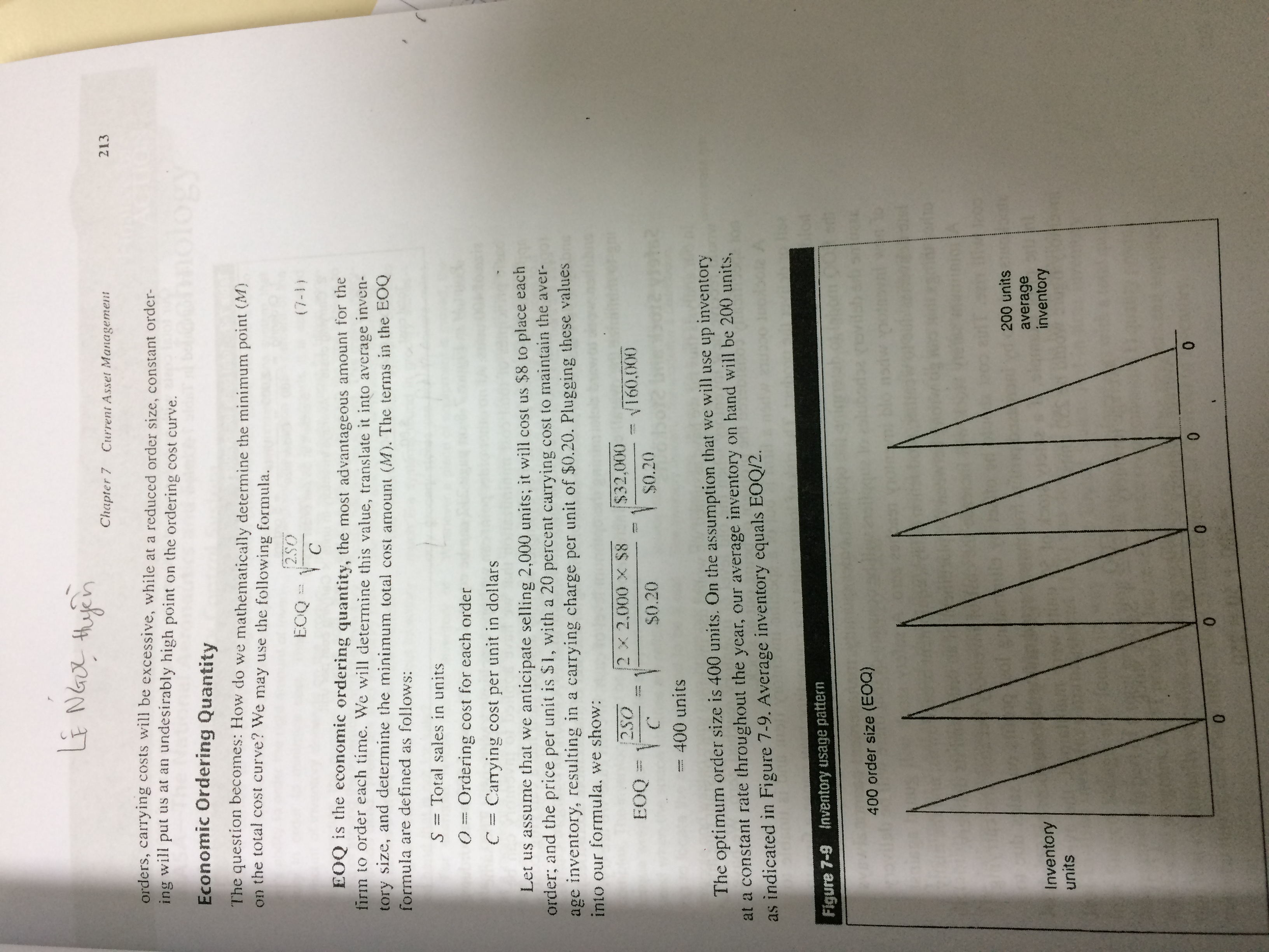 EOQ ModelEOQ Model: Economic order quantity (EOQ) is the ideal order quantity a company should purchase to minimize inventory costs such as holding costs, shortage costs, and order costs. This production-scheduling model was developed in 1913 by Ford W. Harris and has been refined over time. The formula assumes that demand, ordering, and holding costs all remain constant. | |