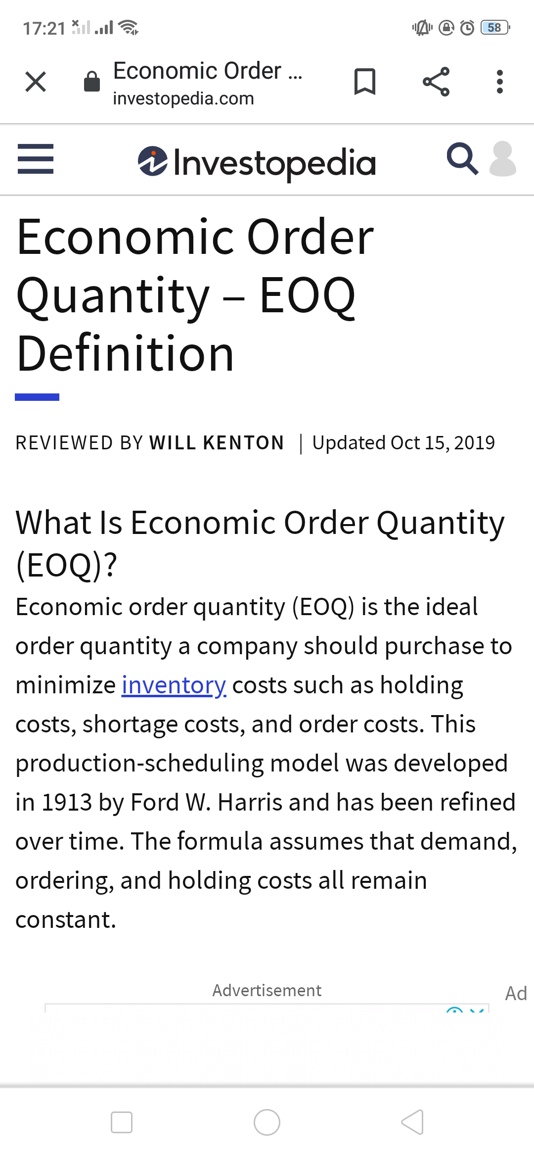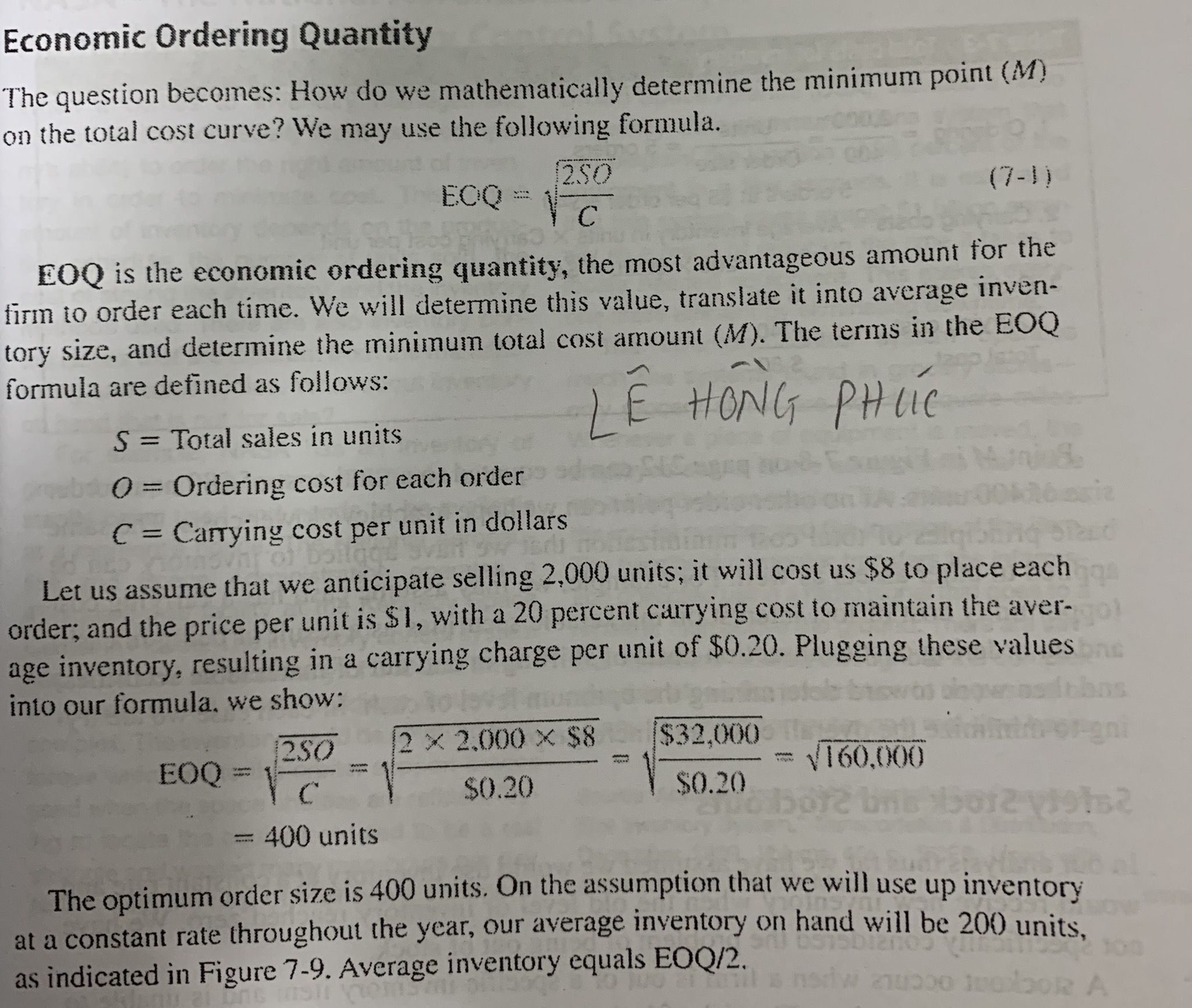 Float and EOQ modelThe float is the number of shares actually available for trading. Float is calculated by subtracting closely held shares -- owned by insiders, employees, the company's Employee Stock Ownership Plan or other major long-term shareholders -- from the total shares outstanding. The Economic Order Quantity (EOQ) is the number of units that a company should add to inventory with each order to minimize the total costs of inventory—such as holding costs, order costs, and shortage costs. ... The EOQ model finds the quantity that minimizes the sum of these costs. | |